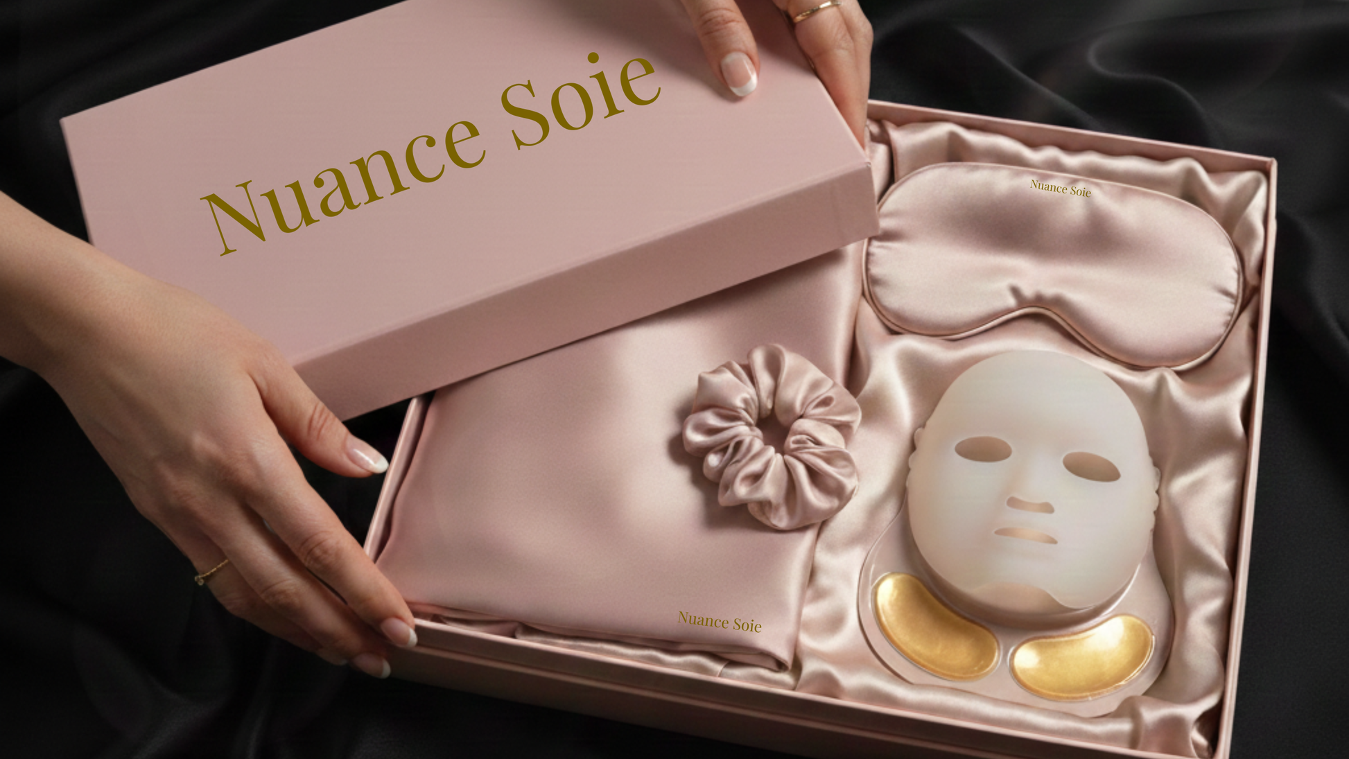 Le Coffret Ultime Nuance Soie a été conçu comme un véritable rituel nocturne, où chaque pièce travaille en harmonie pour préserver votre peau, vos cheveux et votre éclat pendant votre sommeil.